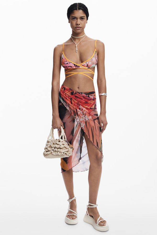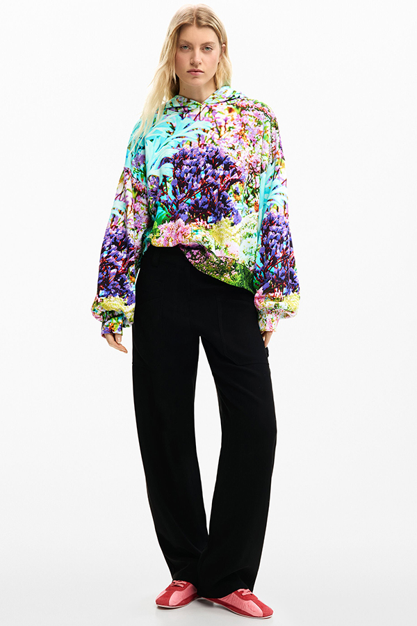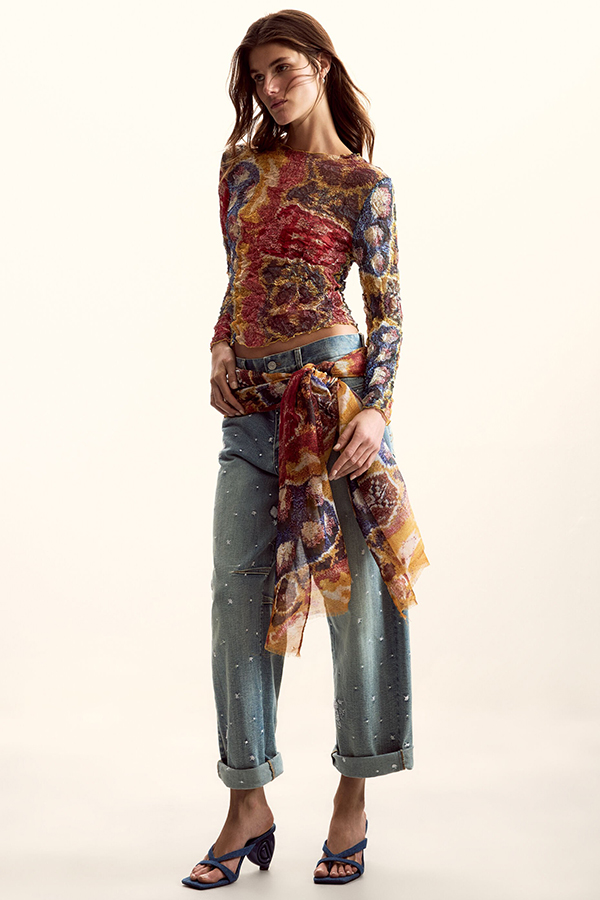 2026SS COLLECTIONDESIGUAL(デシグアル)は、スペイン・バルセロナ発の個性派ブランドで、そのコレクションは、毎シーズンユニークで”他にはない“アイテムが並びます。鮮やかなカラーパレットで描く大胆な柄、世界を旅して見つけたというエスニックな柄、そしてさまざまな素材をパッチワークしたり、刺しゅうやフリンジといったディテールを加えたりすることで生まれる独自のミックス感が特徴です。スペイン語で「デシグアル」とは「同じではない」という意味で、1984年の創業以来、カンパニースローガンも「他とは一味違う」と掲げる。そこには「身にまとう人の気持ちがポジティブになるように、着る人が個性を洋服を通じて表現できるような商品を提供したい」という思いがある。「デシグアル」のショップに行くと、“他とは違う”何かが見つかる。例えば、デニムパンツを解体して再構築したデニムジャケット、ダンガリーシャツとニットポンチョをハイブリッドしたヒッピー調のポンチョ、鮮やかなカラーパレットで描く大胆な花柄ドレスなどで、いずれもポジティブなムードが溢れています。